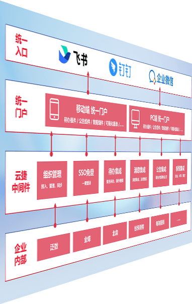 对协作平台提供支持服务,,支持企业应用与协作平台对接,,,包含组织同步、、、消息集成、、、、待办集成等。。。。支持目前主流的协作平台:钉钉、、、企微和飞书。。